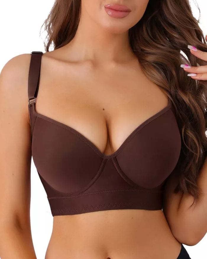 [2-Pack] Extra Firm High Compression Full Cup Push Up Bra - Black+Brown