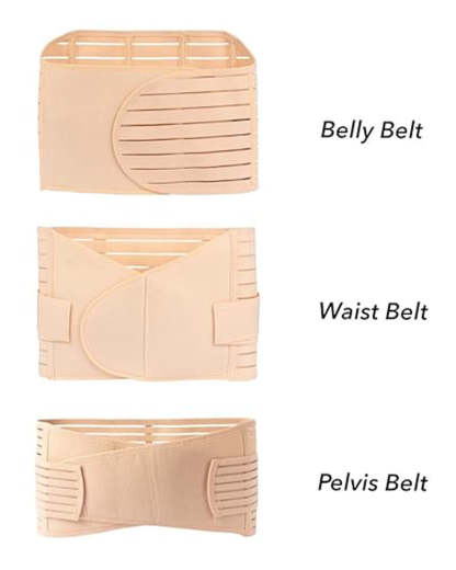 Includes: 3-in-1 adjustable postpartum belt set (abdominal, waist, and pelvic belts)