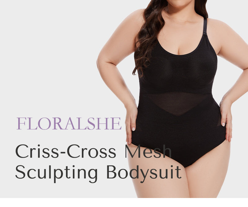Criss-Cross Mesh Panel Sculpting Bodysuit