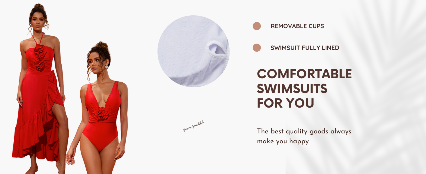 Detachable 3D Flower Red One Piece Swimsuit and Skirt