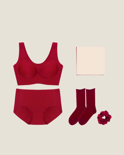 The RED Limited Edition Sweetheart Gift Set from Floralshe is a festive collection designed for the upcoming Christmas season. making it a wonderful gift for you and your loved ones. This set features the bestselling Cloudy Comfort Bra. Classic Mid-Rise Briefs. Cotton Socks. and a Scrunchie. perfect for any occasion and designed for all-day wear.