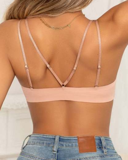 Our bras are made of soft. breathable material that hugs the skin to ensure all-day comfort. This bra is designed with convenience and functionality in mind. The front-opening deep V design is easy to put on and take off. making putting it on and taking it off a breeze. The wireless design provides comfortable support and eliminates the discomfort associated with traditional underwear. Unique cross-strap design adds a touch of elegance and sophistication while providing additional support to minimize shoulder load. Adjustable straps adjust to different body shapes and sizes.
