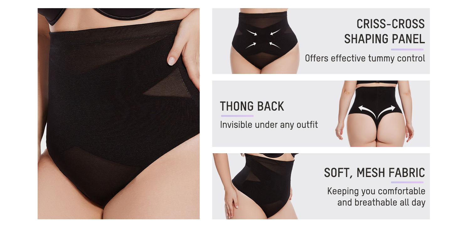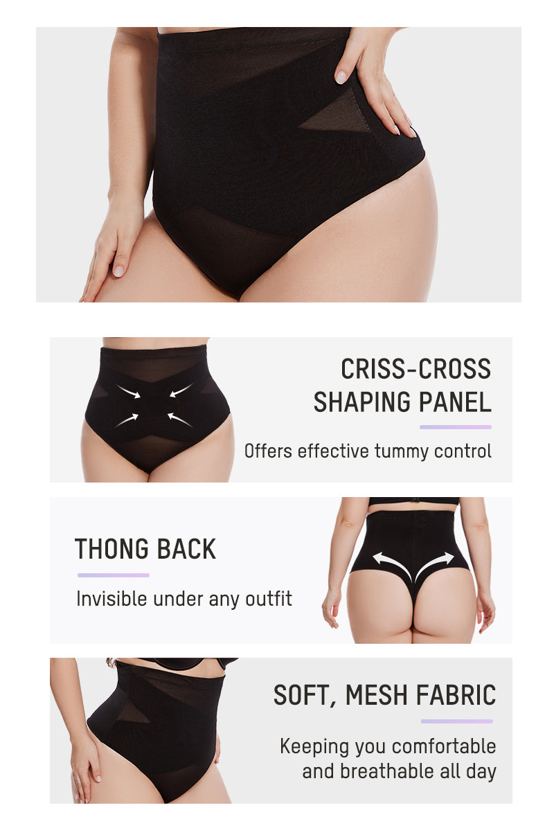 High Waist Criss-Cross Mesh Shaping Thong Panty