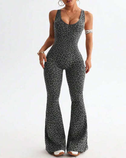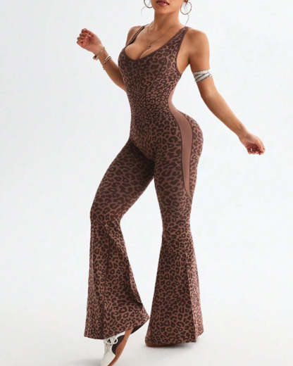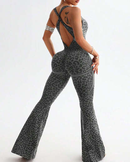 Embrace fierce flexibility in this head-turning jumpsuit. The bold leopard print and sleek crossback design offer stylish support, while seamless elastic fabric moves with you through any workout. Perfect for yoga, fitness, or athleisure wear, this jumpsuit combines fashion and function for confident performance.