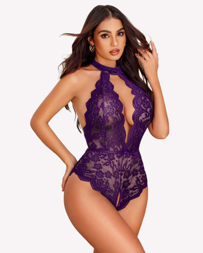 Halter Lace Bodysuit V Neck Teddy