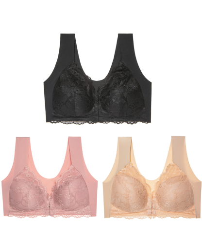 •Non-steel ring, Non-adjustable straps, Lace design, Front closure