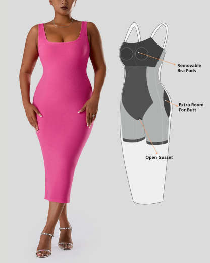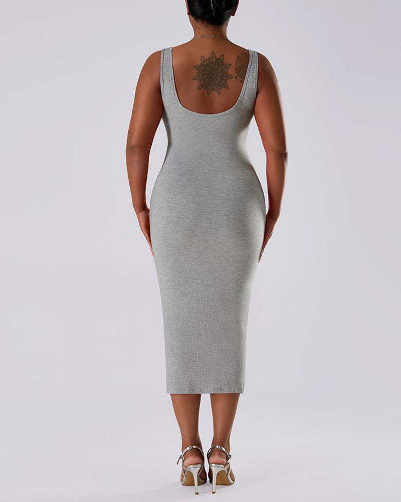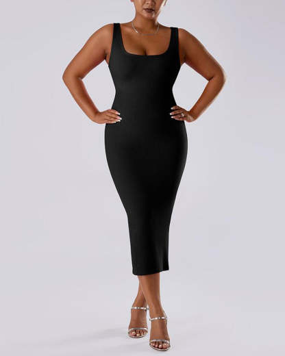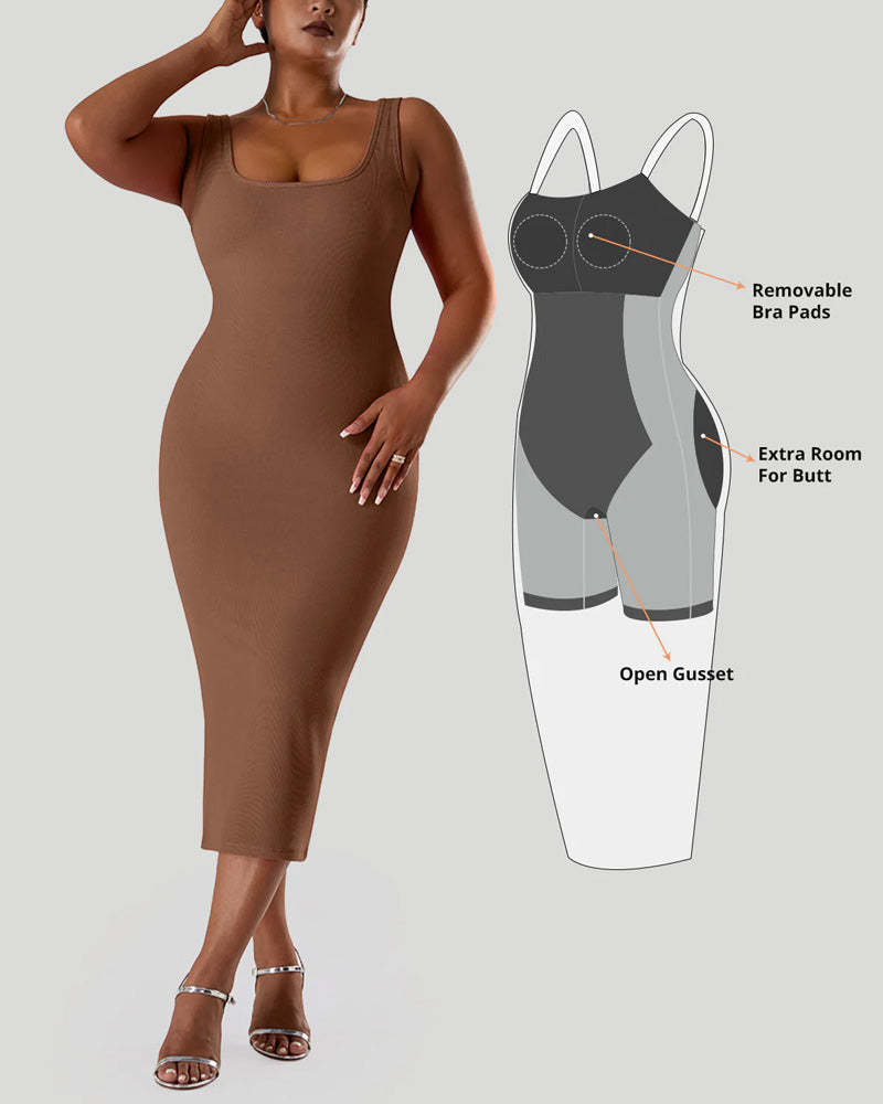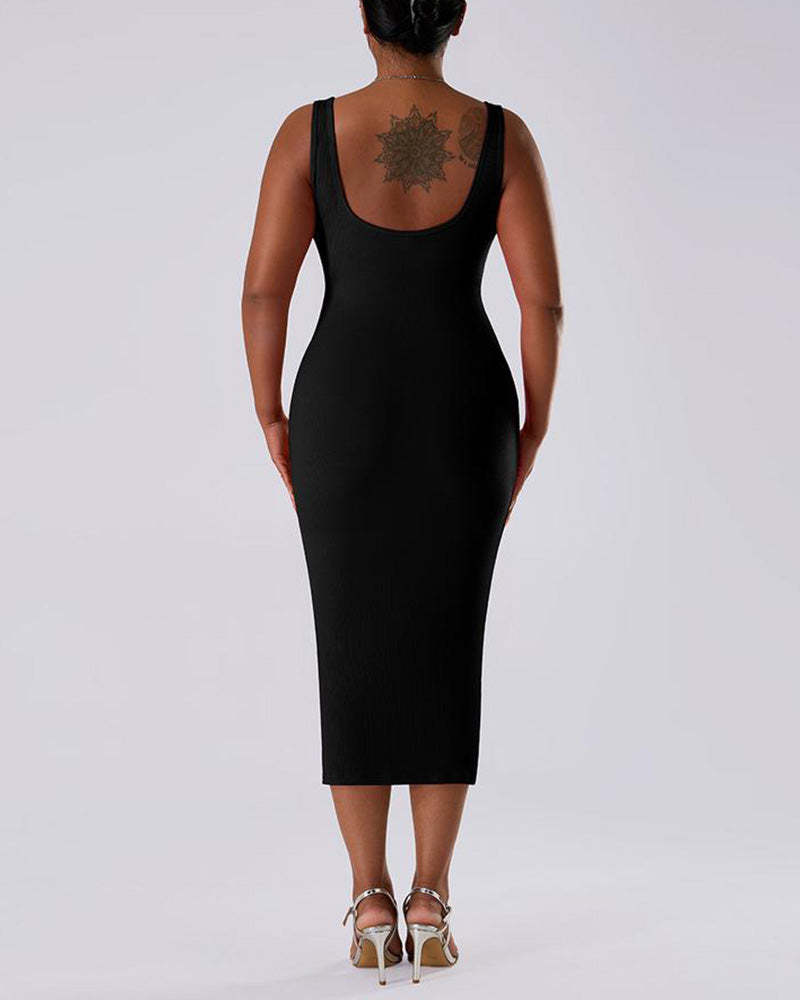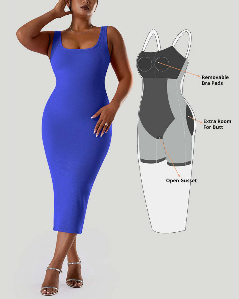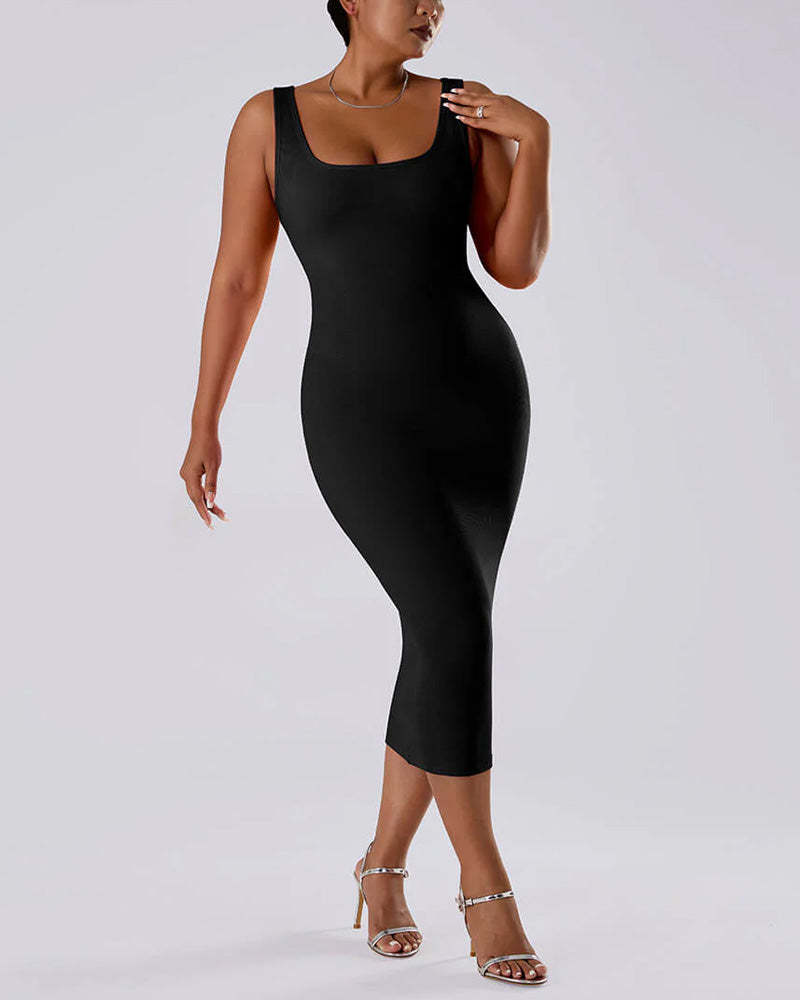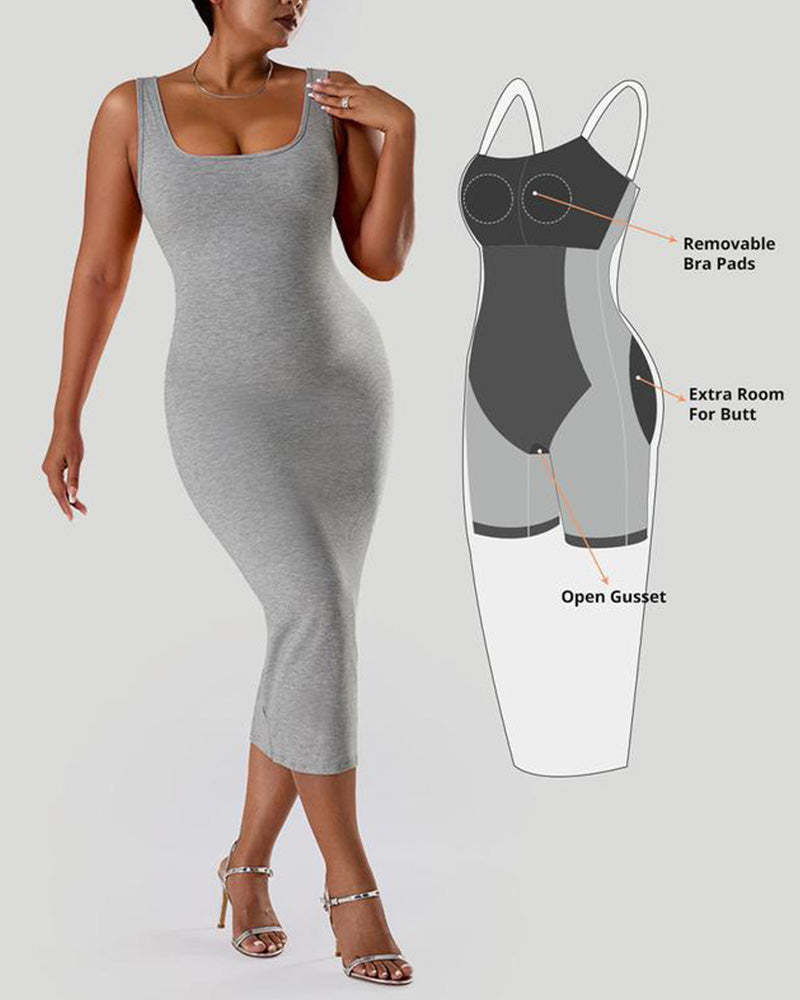 Solid Color Sleeveless Waist and Hip Lifting Long Dress With Built In Shapewear