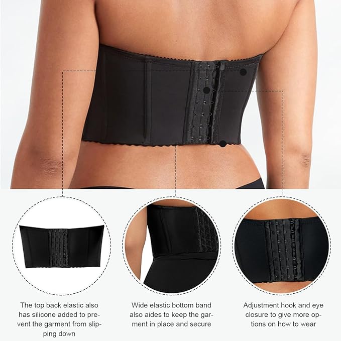 Eliminates back bulges and bra lines with wide, ultra-comfortable side and back straps.
