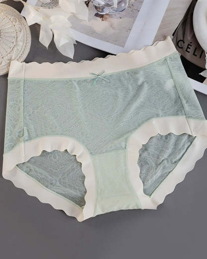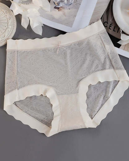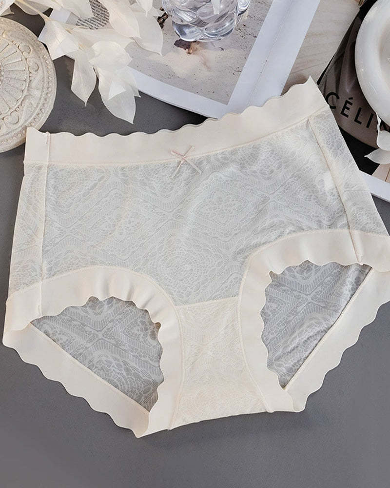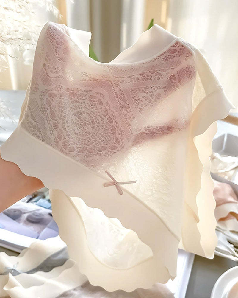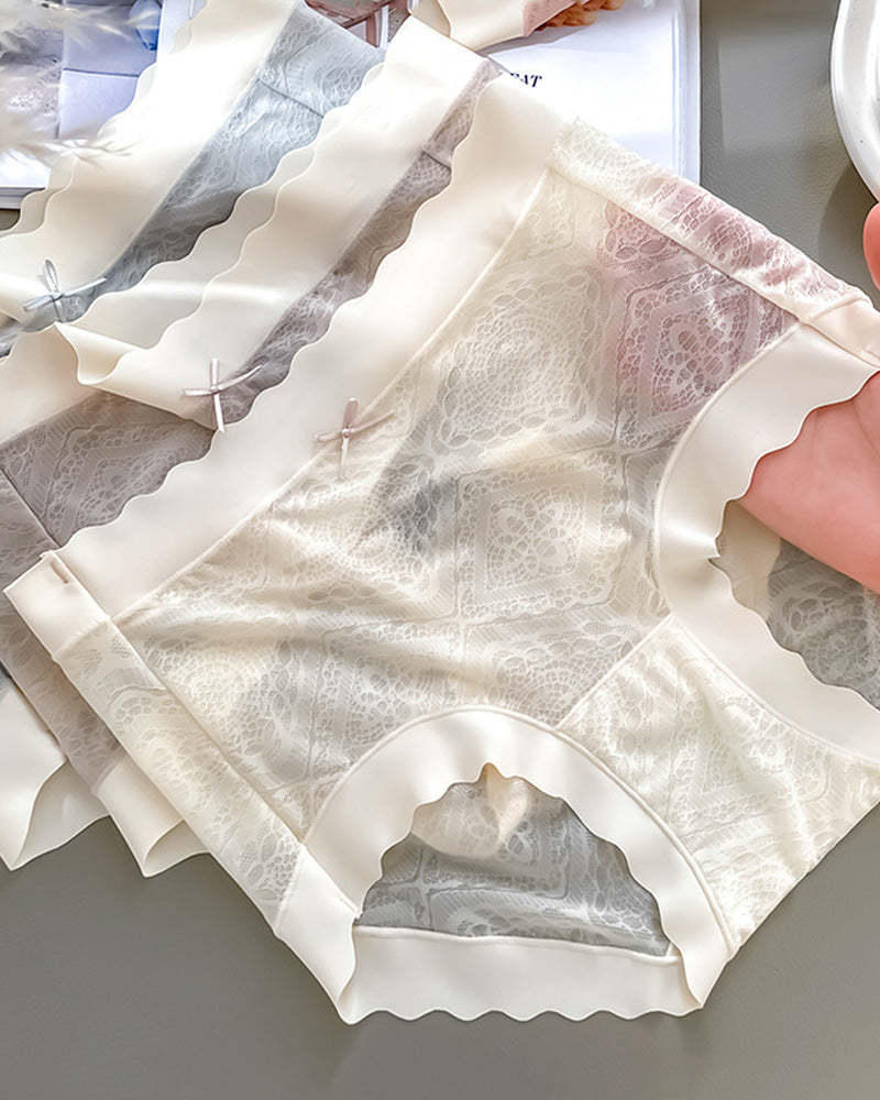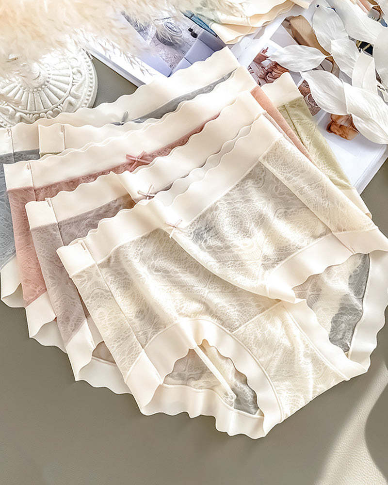 Women's Ice Silk Pure Cotton Antibacterial Crotch Thin Seamless Mid-Waist Breathable Lace Panties