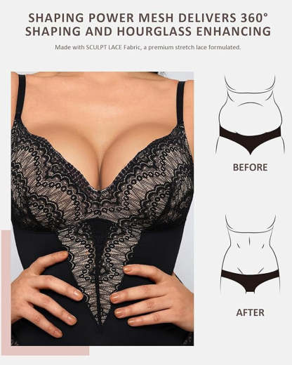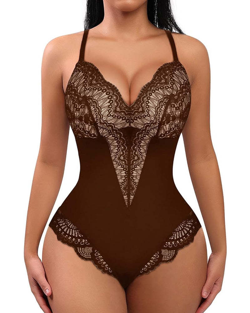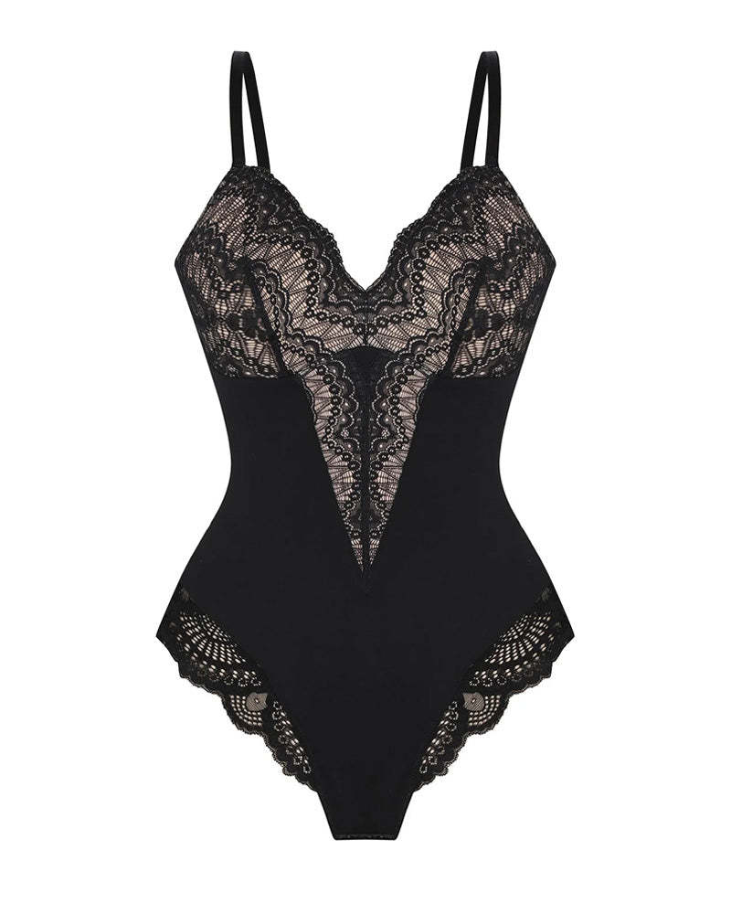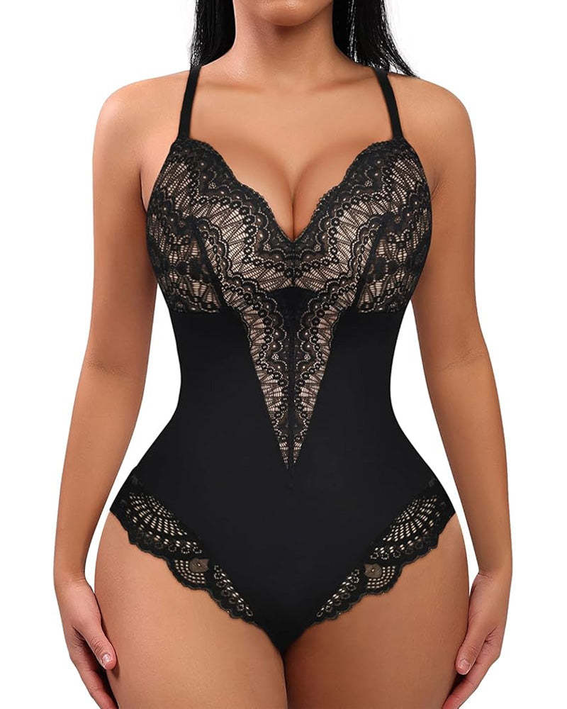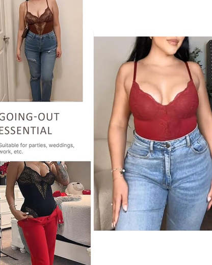 This one-piece shapewear bodysuit is designed to provide a seamless, smooth appearance under your clothing, with no visible panty lines. It can also be worn on its own as a stylish lace tank top or camisole, eliminating the need for additional undergarments. Its sleek design ensures a flat, non-lumpy, and shapely look, making it a versatile addition to your wardrobe.