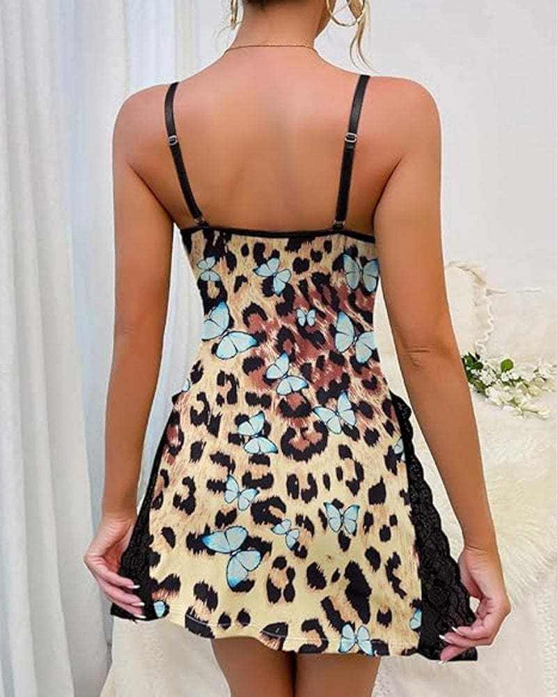 Elevate your sleepwear with delicate lace trim along the neckline, back, and adjustable suspender straps. The low-cut lace accents and high side slits highlight your femininity, while the hollowed back design frames your shoulders and spine for a tantalizing silhouette.