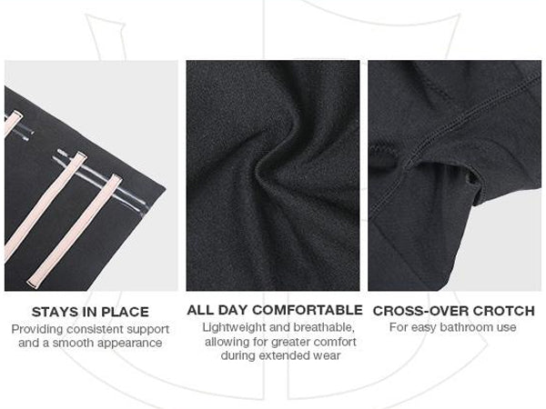 Silicone grip strips prevent rolling, keeping the shapewear securely in place.