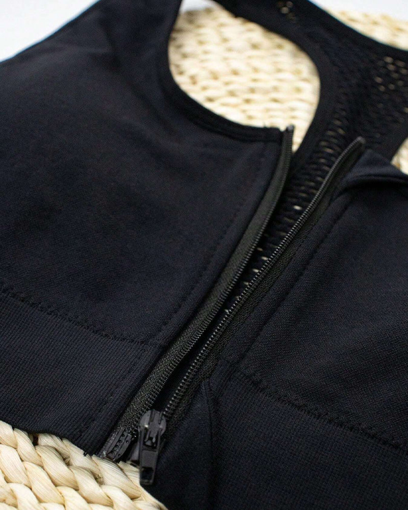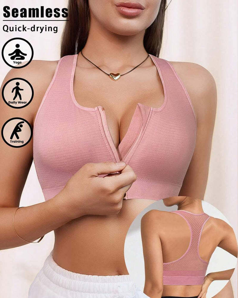 Women's Zipper Padded Seamless Elastic Sports Bra – Comfort & Support for Active Lifestyles